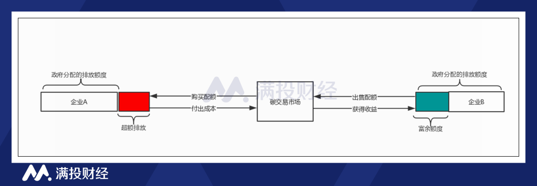 所谓碳交易,是指将二氧化碳的排放权力作为资产标的进行交易的市场。政府确定整体的减排目标后,会将初始的碳排放权分配到纳入交易体系的企业中,而这些企业可以在二级市场中转让该权力。减排成本相对较低,拥有富余碳排放配额的企业可将多余的碳排放权卖给减排成本相对较高,碳排放超额的企业,以此获取额外的收益。在该制度下,企业会为了增加收益/减少购买多余配额而尽可能的降低生产过程中产生的CO2等温室气体排放,最终实现社会减排成本最小化。