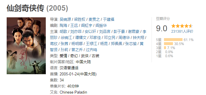 待映的仙侠剧谁会大爆,谁又会遭遇全网群嘲现在较难预估。回顾已上映的仙侠剧,毫无疑问《仙剑奇侠传》是“YYDS(永远的神)”。由刘亦菲、胡歌、彭于晏等主演的《仙剑奇侠传》于2005年火热上映,豆瓣评分9.0,如今十六年已去,没有一部仙侠剧的口碑可以超越它。