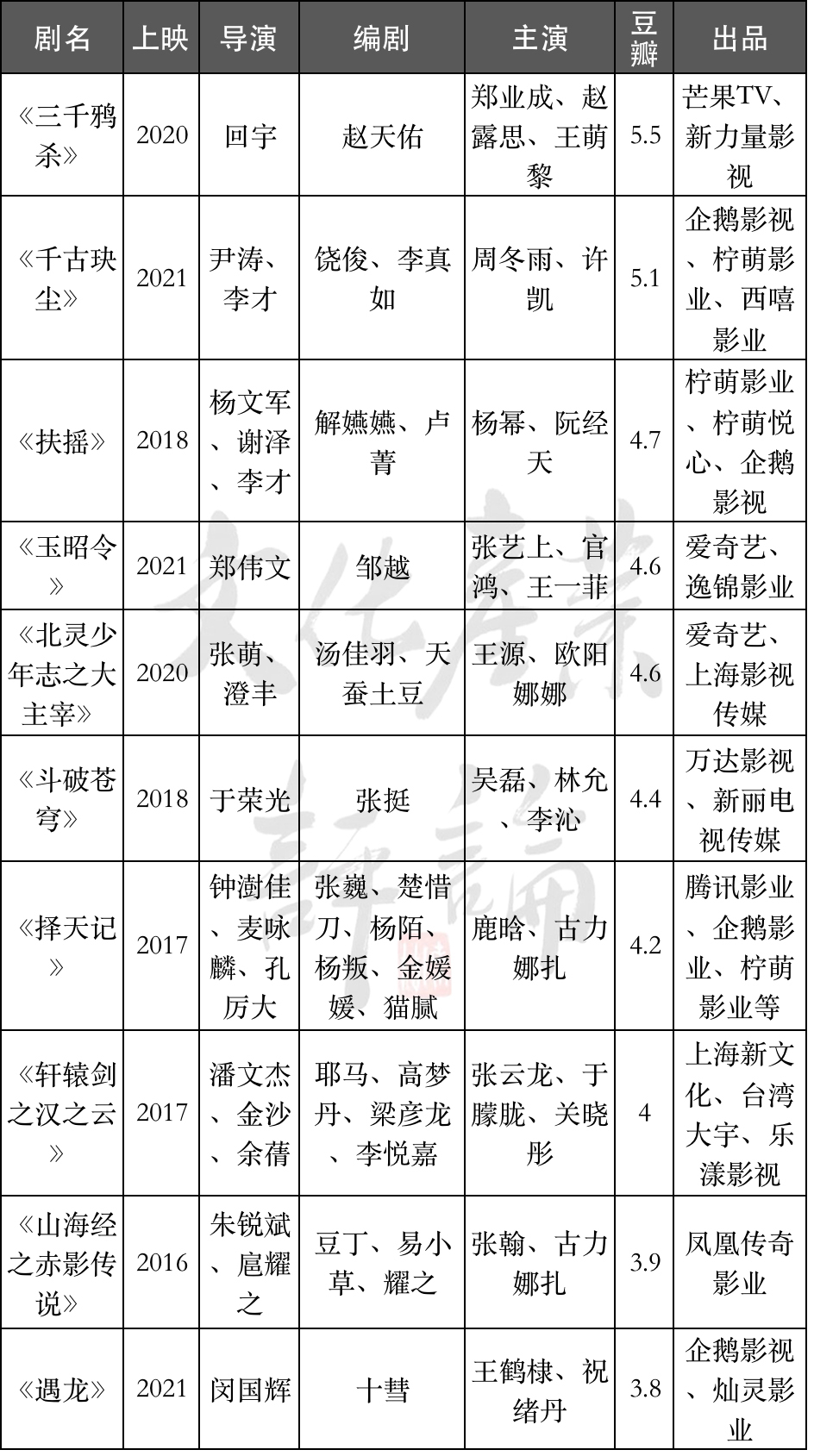 从上文仙侠剧红榜与黑榜可以看出,《仙剑奇侠传》《琉璃》《花千骨》等爆款仙侠剧均来自唐人影视、欢瑞世纪、慈文传媒等精于内容的老牌影视公司,而《千古玦尘》《三千鸦杀》《玉昭令》等扑街仙侠剧则出自腾讯、爱奇艺与芒果TV,所以财大气粗的视频平台手握热门IP未必能拍出好剧。