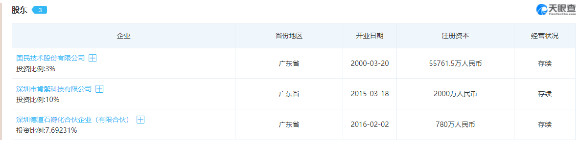 值得一提的是,国民技术并未披露此次定增资金来源。天眼查显示,除上市公司外,孙迎彤仍投资了两家公司。以投资比例计算,其分别对深圳市肯綮科技有限公司出资200万元、对深圳德道石孵化合伙企业出资60万元。