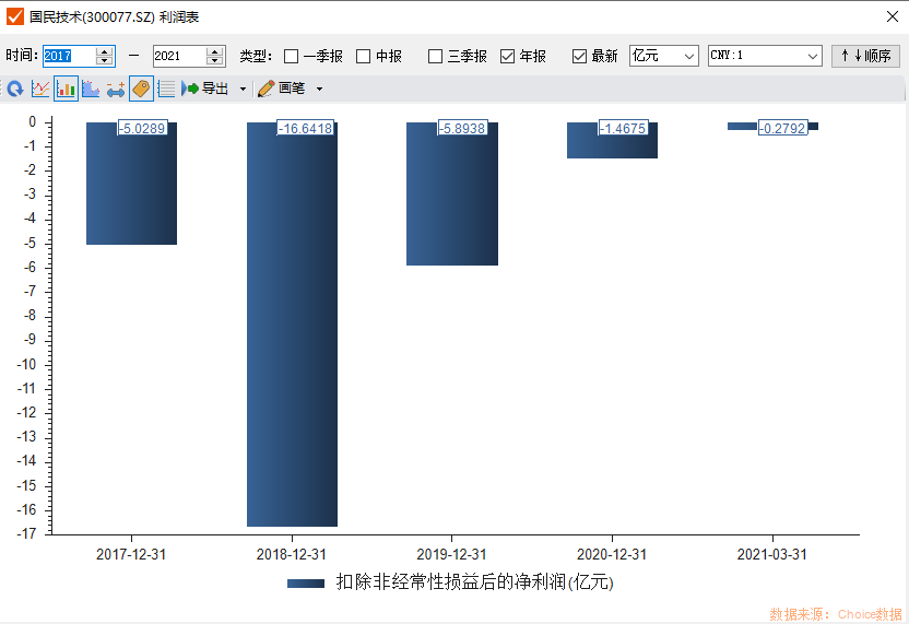 国民技术主营业务包括安全芯片、负极材料销售及加工。近几年新能源汽车大火,但并没有带动公司业绩增长。