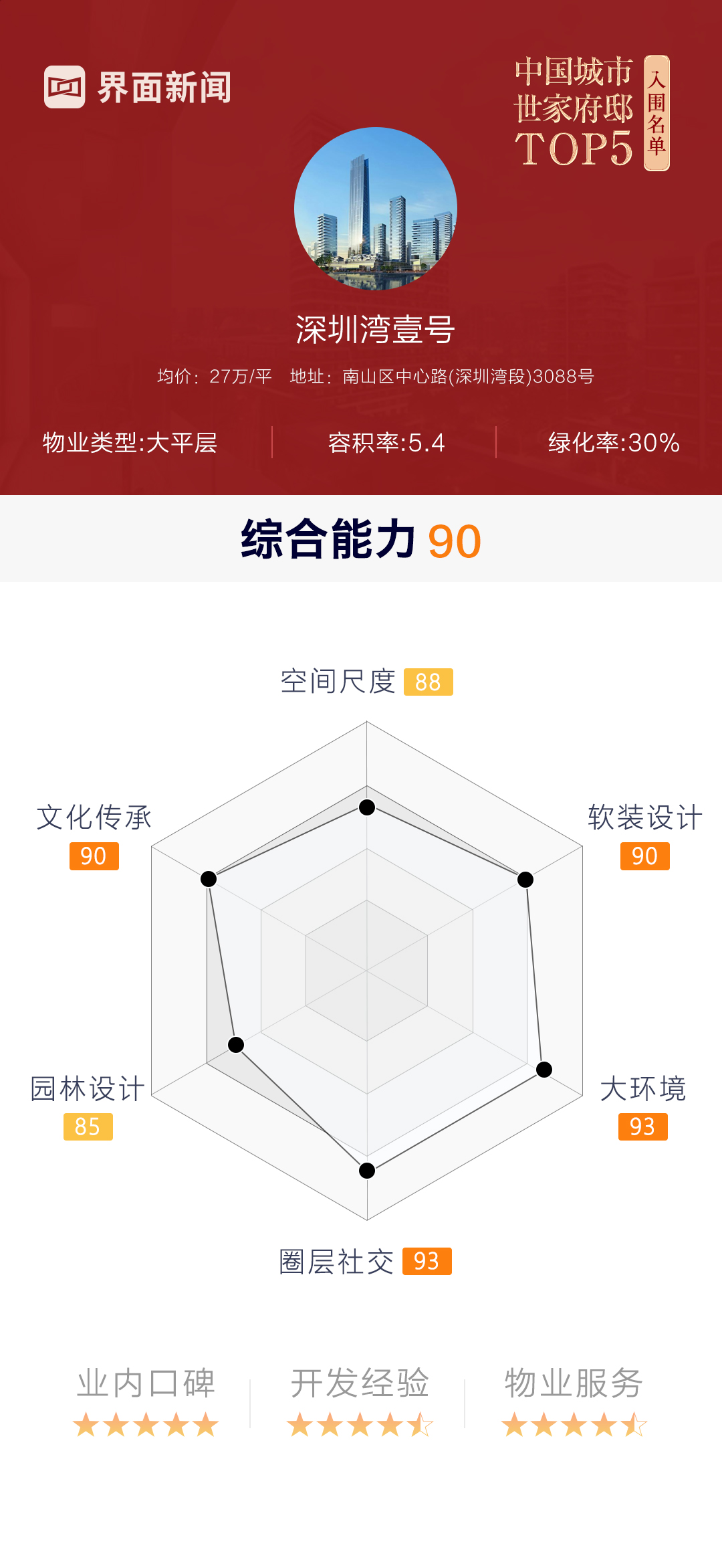 作为深圳房产价值最高的地方,深圳湾882公顷的土地上,遍布名企总部,居住产品却不多有。而深圳湾壹号不但占据了其中最为有利的位置,也不负众望地打造出“豪宅天花板”,以至于诞生以来,便成为了身份与圈层的象征。