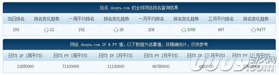 同期,斗鱼平台在alexa排名显示,一周内每天IP访问量数字为1185万,日均PV为7110万,人均页面浏览量6.86。在2016年5月3日当天,斗鱼平台首页观众略多的游戏直播内容为英雄联盟,单个视频观众人数55.3万。