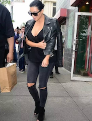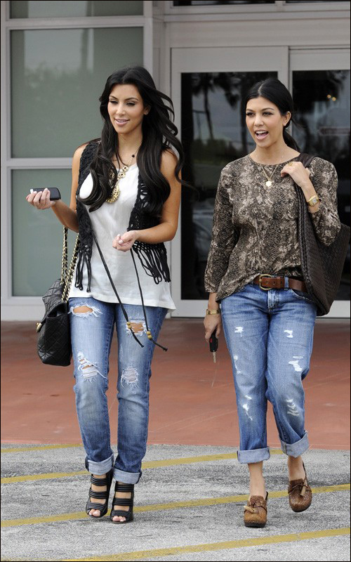 丰乳肥臀的卡戴珊照样穿破洞裤,即使勒出肉也不care。