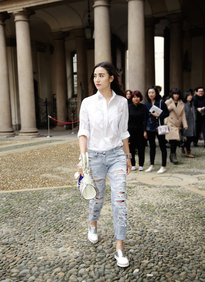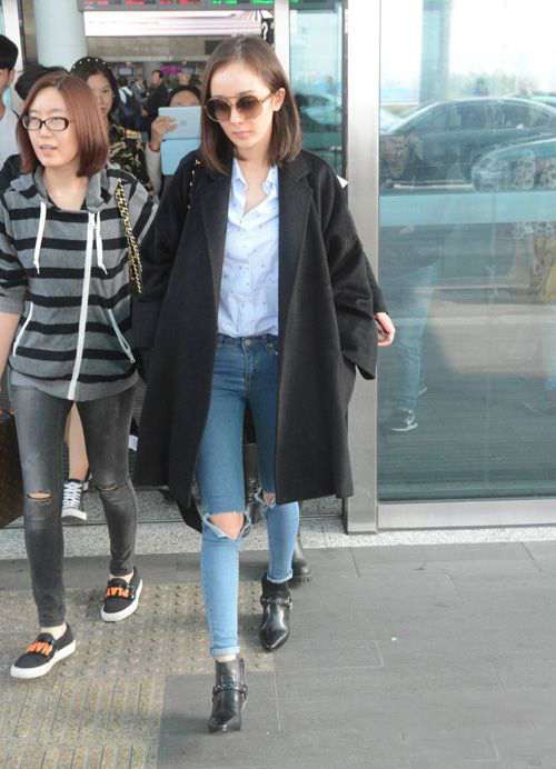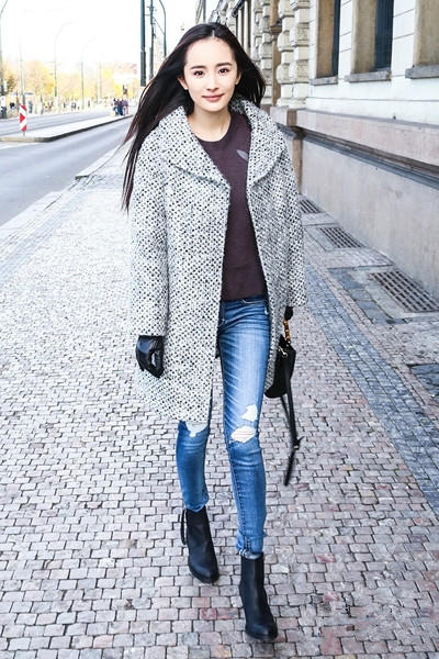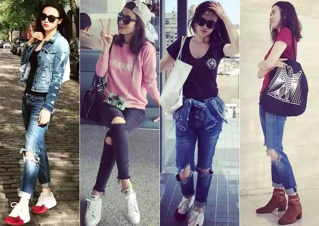 杨幂也是破洞牛仔裤界的高手,毕竟她的腿非常细。
