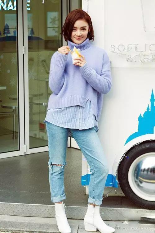 最忌讳在破洞裤下面穿上复杂厚重的鞋子,一面是显得腿短,一面是整个人非常笨拙。假如你没有嘻哈暗黑的气质,扔掉那些铆钉满满、鞋带多多的鞋吧。在此严重批评大黄靴和厚底鞋,能不穿就不穿。请从心底里认清自己矮的事实朋友们!除了高跟鞋其他没有增高的技能,只会扮丑。