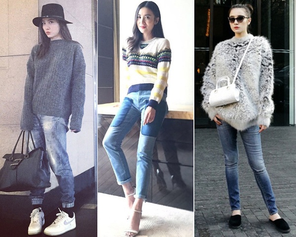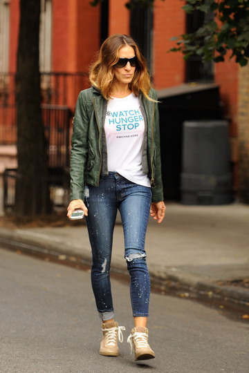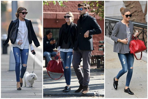 穿破洞牛仔切记鞋子要简单,简单,简单。