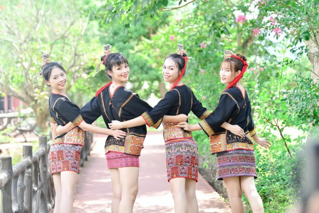 接下来的两年里,大家总能看见她穿着黎锦和阿婆在田间地头激情对唱、跳最拉风的网络神曲、弹评动听的竹木乐器,和一众姑娘小伙诠释热情的黎舞……似乎黎锦到了张潮瑛这里,既接地气,又有了无限可能,甚至焕然一新。