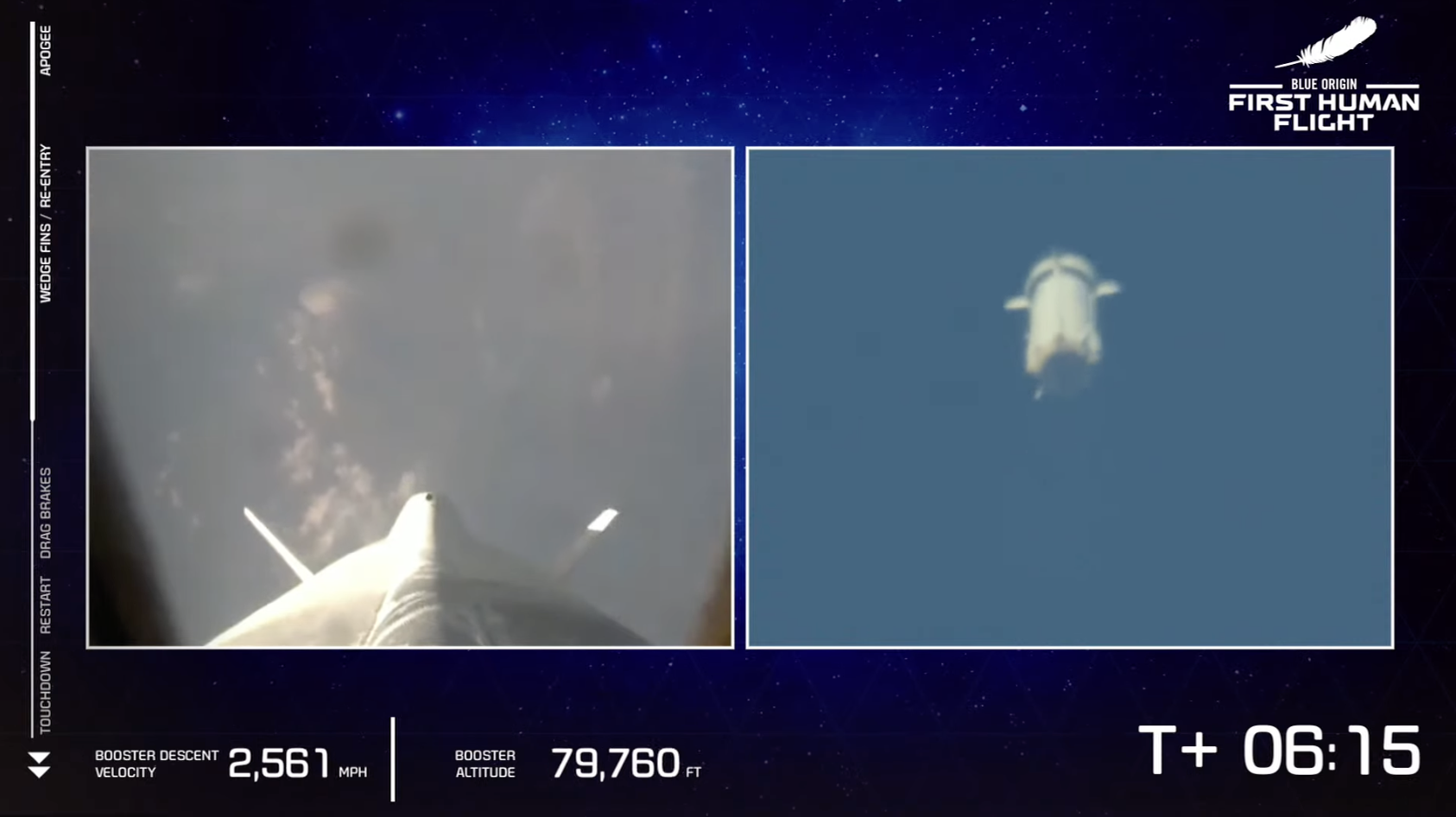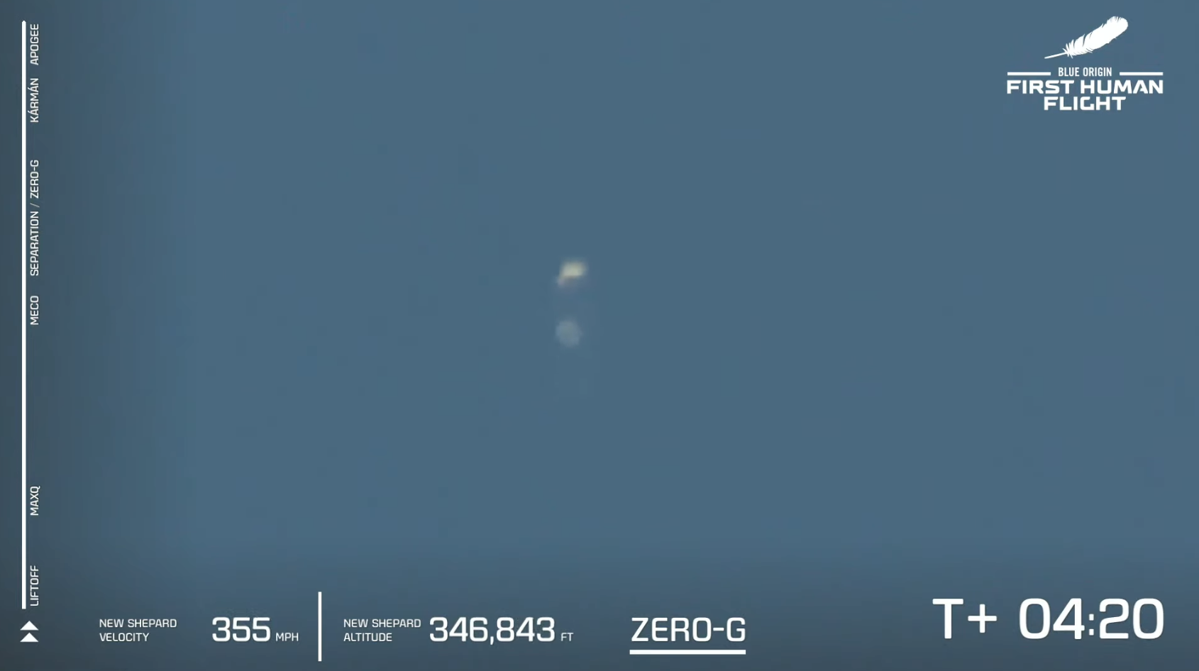 随后,太空舱与助推器分离。随着高度继续攀升,太空舱进入失重状态。