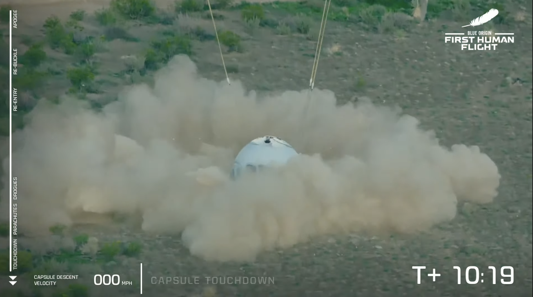 与奥利弗相同,贝索斯同样将太空旅行视作自五岁起的梦想,并将其形容为“意义重大的事”、“一次伟大的冒险”。当太空舱成功落地,贝索斯头戴牛仔帽稳步出舱,在欢呼声中与众人一一击掌。其他三位乘客也均成功落地,安全出舱。