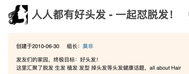 豆瓣小组“人人都有好头发 - 一起怼脱发!”的成员已经超过20万人。这里既有“长发公主”记录头发治疗、也有“秃头阿姨”发帖询问自己的头发还“有没有救”、还有“头秃山反植发鬼 ”咨询毛囊存活率的鉴定方法……