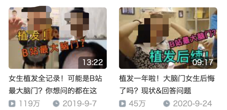 当这位叫“魔法少女乌塔”的B站up主在一条名叫“植发一年啦,大脑门女生后悔了吗?”的视频中自嘲时,她大概不会想到,这段调侃与自己的另一个植发分享视频,会变成她在B站两年来最火的两个作品。