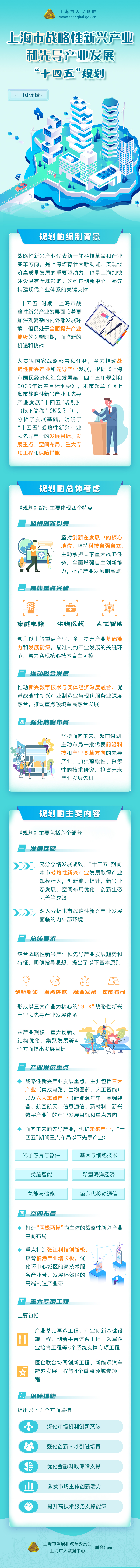 上海市人民政府网站7月21日消息,上海市人民政府办公厅日前印发《上海市战略性新兴产业和先导产业发展“十四五”规划》。规划指出,到2025年,技术创新能力显著提升,关键技术攻关取得重大突破,产业基础高级化、产业链现代化水平明显提高,战略性新兴产业成为现代产业体系新支柱,谋划布局一批面向未来的先导产业。初步建成带动长三角新兴产业协同发展的技术策源地,引领全国新兴产业发展的战略创新高地,培育一批具有国际竞争力的龙头企业,打造一批世界级新兴产业集群。