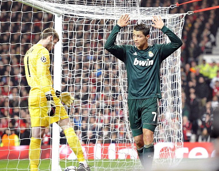 2013年,皇马在16强赛中战胜曼联,而C罗在第一场战平后回到老特拉福德球场应战他他的东家曼联。