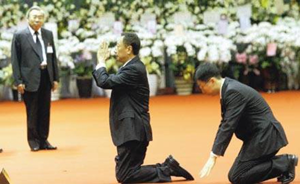 他去世时,堪称台湾最具斗士精神,甚至桀骜不驯,很少服过人的富士康董事长郭台铭,曾带着儿子郭守正,三行跪叩大礼,称这是他除了父亲外,第一次向长辈行跪拜礼,并盛赞“王老是前无古人、后无来者的台湾工业之父,更是工业界的领导,大家要学习他努力向前冲的精神”。