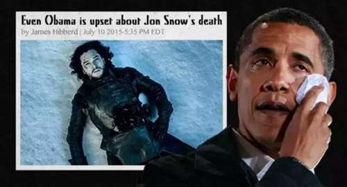 但《权力的游戏》剧组上下认真地告诉大家囧雪真的死了。从瞳孔扩散论,到演员要求加薪,从弑君者、艾丽娅上电视力证囧雪之死,到囧雪扮演者基特·哈林顿接受测谎证明自己真的被剧组抛弃了,从导演回复奥巴马囧雪已经死透透了(deader than dead),到哈林顿辩白自己出现在拍摄现场只是因为要扮演死尸,这个心机剧组大费周章,大玩悬念。