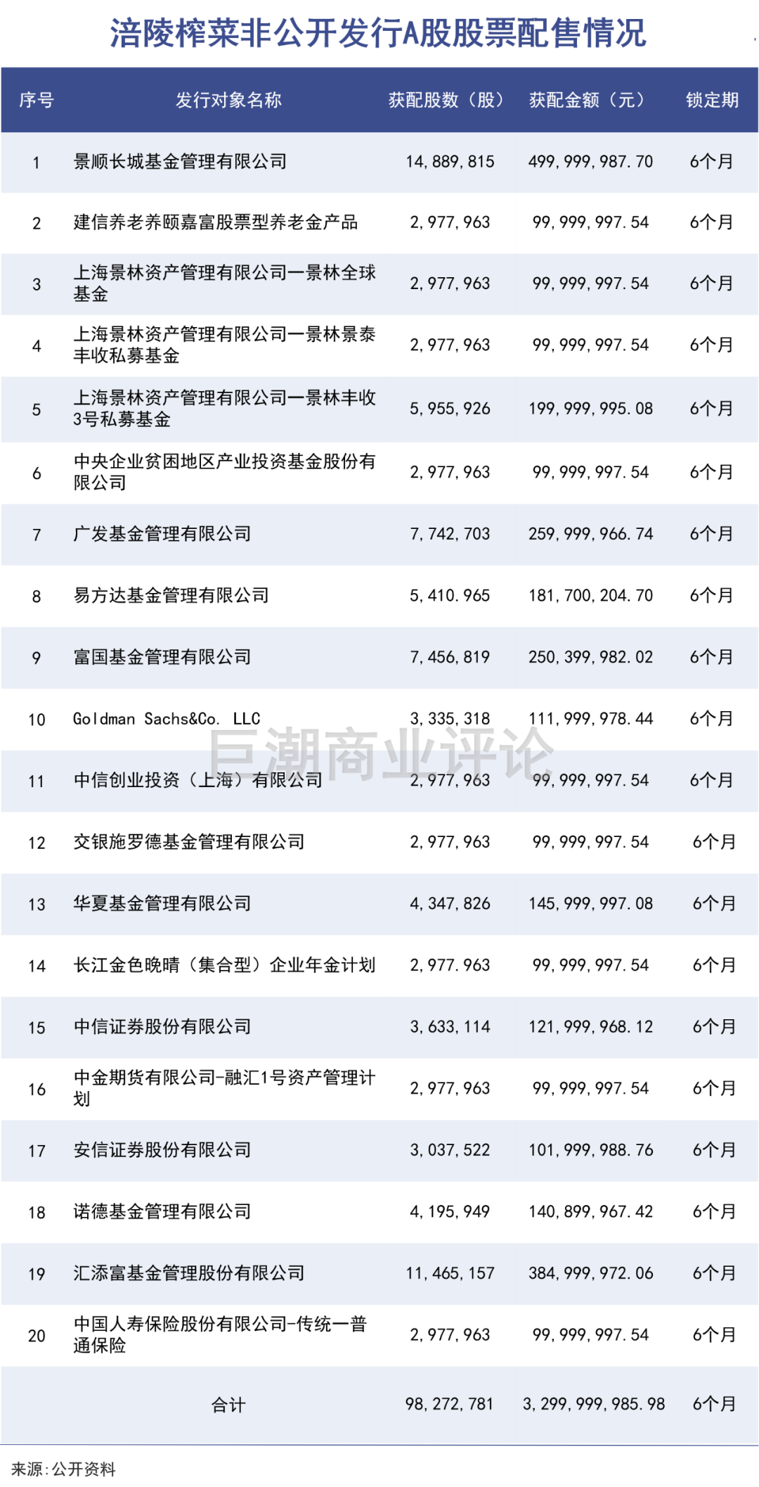 今年5月14日,涪陵榨菜公告完成了一轮总额高达32.80亿元的定增融资,由于其常年良好的业绩表现,获得了来自大量顶流投资机构的热烈追捧,场面壮观。
