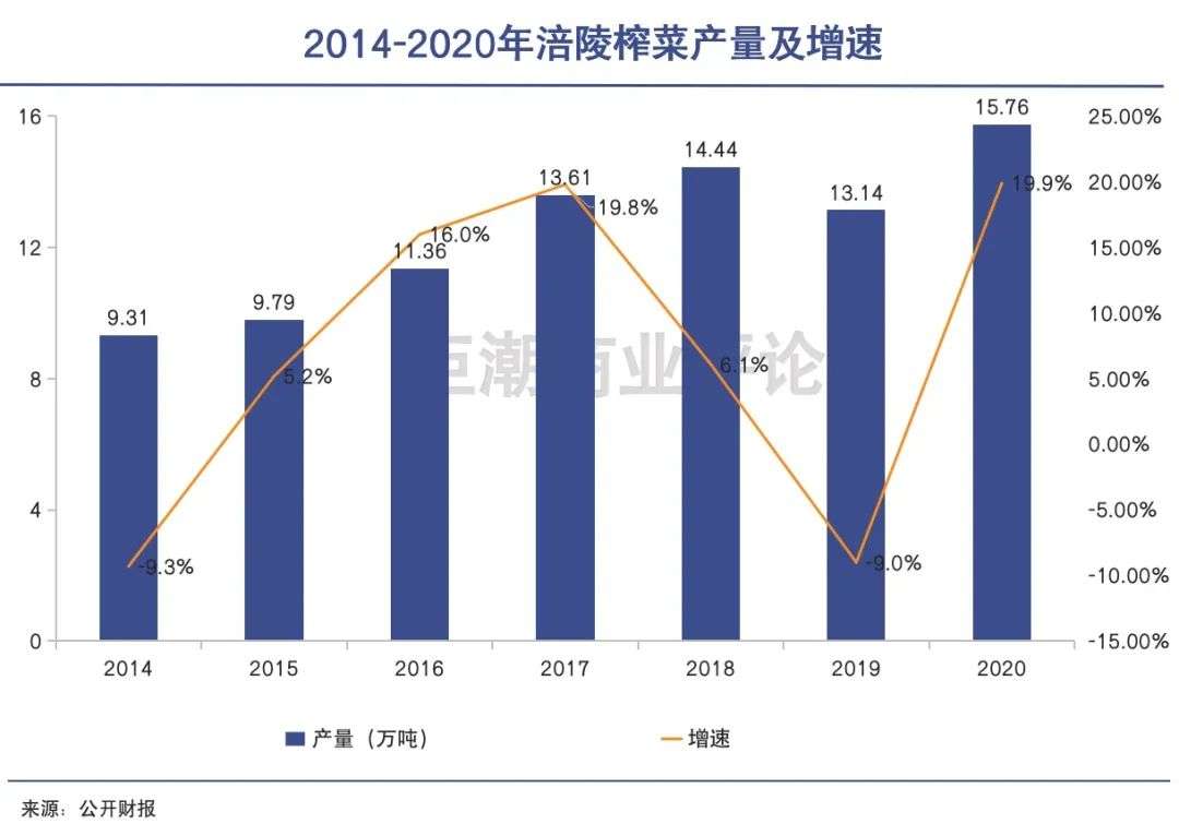 从过去几年涪陵榨菜的产量增长情况来看,保持5年连续20%的增长也是前所未有的高要求。