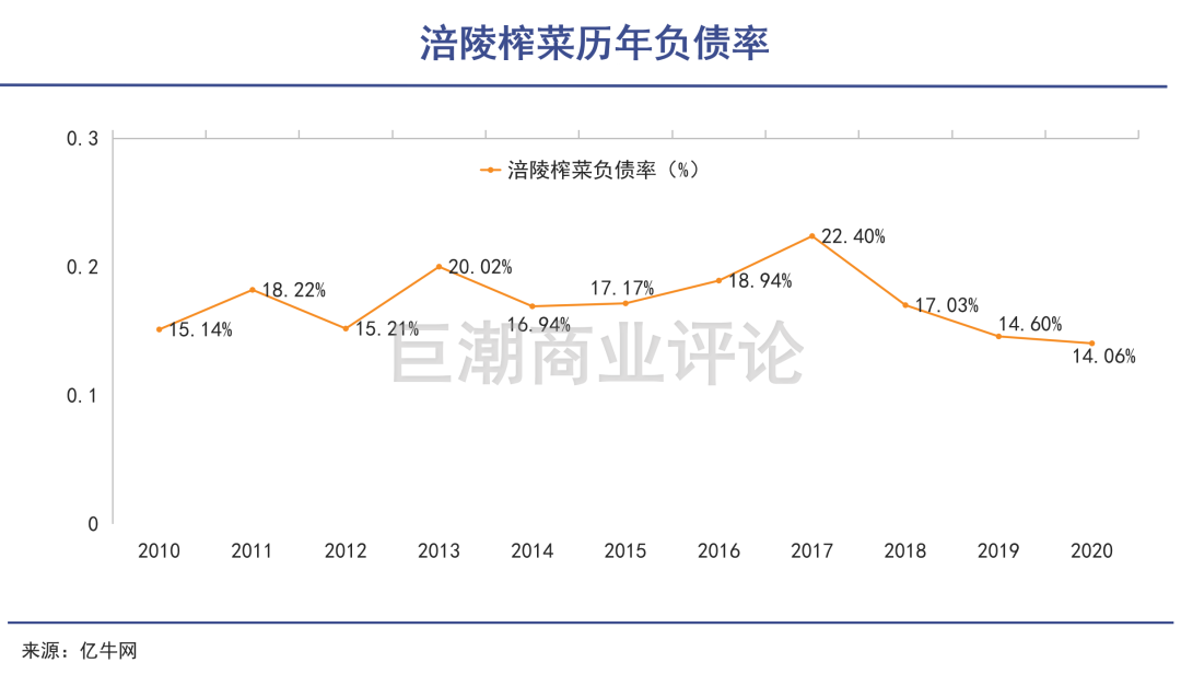 其中值得注意的问题在于,最近几年涪陵榨菜的净利率有所下降,很重要的原因是营销费用的增加:2015年这个数据是1.89亿元,到2019、2020年则分别是4.07亿元、3.68亿元。为了卖掉更多的高价榨菜,企业必须拿出更多的费用进行宣传。