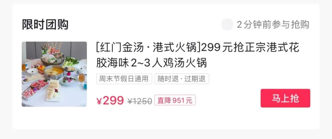 相比美团,抖音有更低的准入门槛和佣金,美团商家需要缴纳1800元的认证费用,上线团购套餐则需要缴纳每单5-10%的成交额。抖音团购仅需商家注册用户,缴纳600元注册认证企业号,且成交无抽佣,商家有给出更大力度折扣的空间,所以目前,原价的2~4折是抖音团购的常见价格。