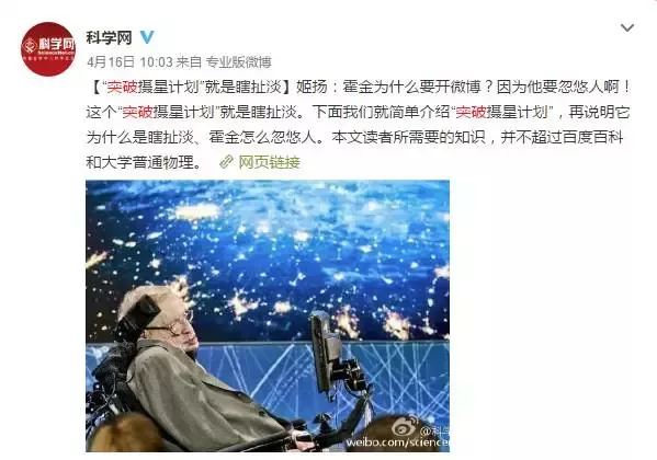 差友们肯定知道今年 4 月 12 日,霍金在中国开通了他的微博。