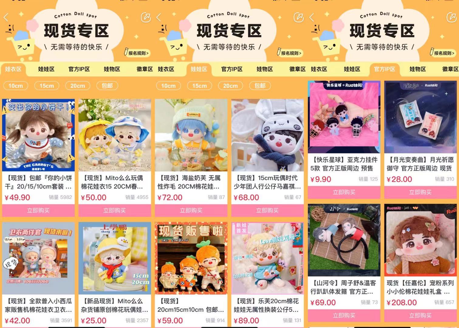 据“百香果衣橱”的店主向界面新闻介绍,出一个新款棉花娃娃的时间在两个月左右。筹备期间需要找人画图、找生产厂、打样,最后投入到大货制作。