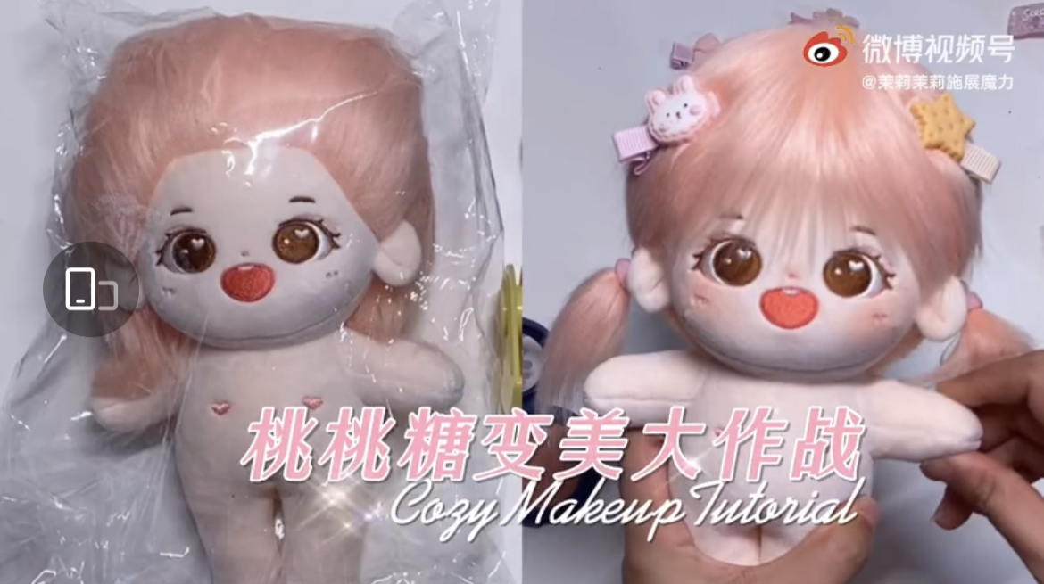 棉花娃娃最早起源于饭圈文化盛行的韩国。经纪公司将旗下明星形象卡通化,制成身高10-20cm左右的同款棉花娃娃。粉丝们购买娃娃后,还可以对其服饰、妆容以及加入塑料骨骼进行形象改造,且价格便宜,因而很受欢迎。抱着精心装扮的偶像同款娃娃,已成为粉丝们应援的标配。