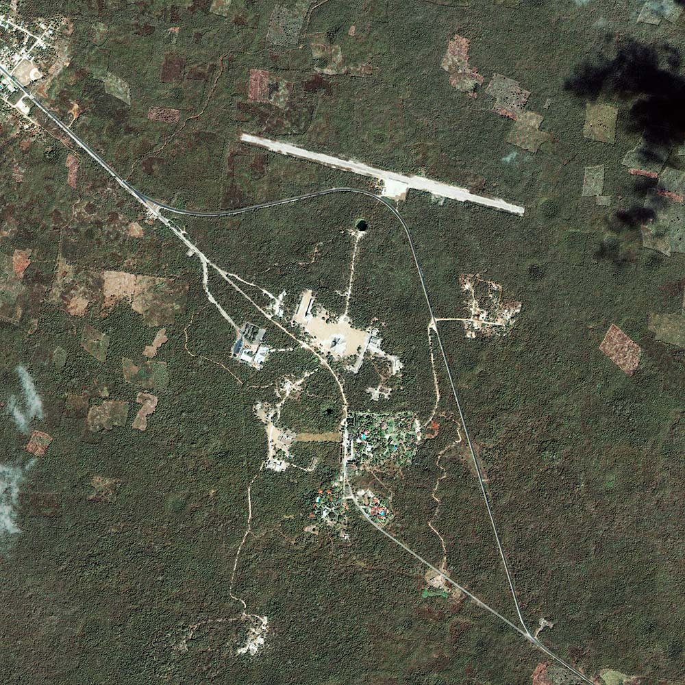 10分钟后我们已经在后门检票处,果然没人。云很厚,几乎压在树梢,月亮偶尔露出来一下,我们过了一座小桥,往丛林里走去。当初玛雅人就是在这边热带雨林里开辟出南北长3公里,东西宽2公里的城池。现在这里是这个国家最有名的景点之一,白天游人不绝,当地人会在小道间售卖一些纪念品,主要是图腾面具,还有一种木制哨子,吹出来的美洲豹吼声极真切,现在这些摊点都撤了,但那些形象好像还留在黑暗里,若隐若现的。我问Gloria,你感受到什么了吗?她不说话。