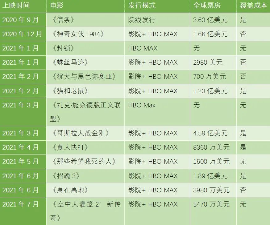 根据目前能够确定的数据,会发现华纳兄弟疫情期间电影票房的成功失败率是一半一半。《信条》只在院线上映,全球票房达到3.63亿美元,而电影成本达到2亿美元,暂且不论电影宣发推广费用、院线分成比例等因素,电影票房覆盖了成本。