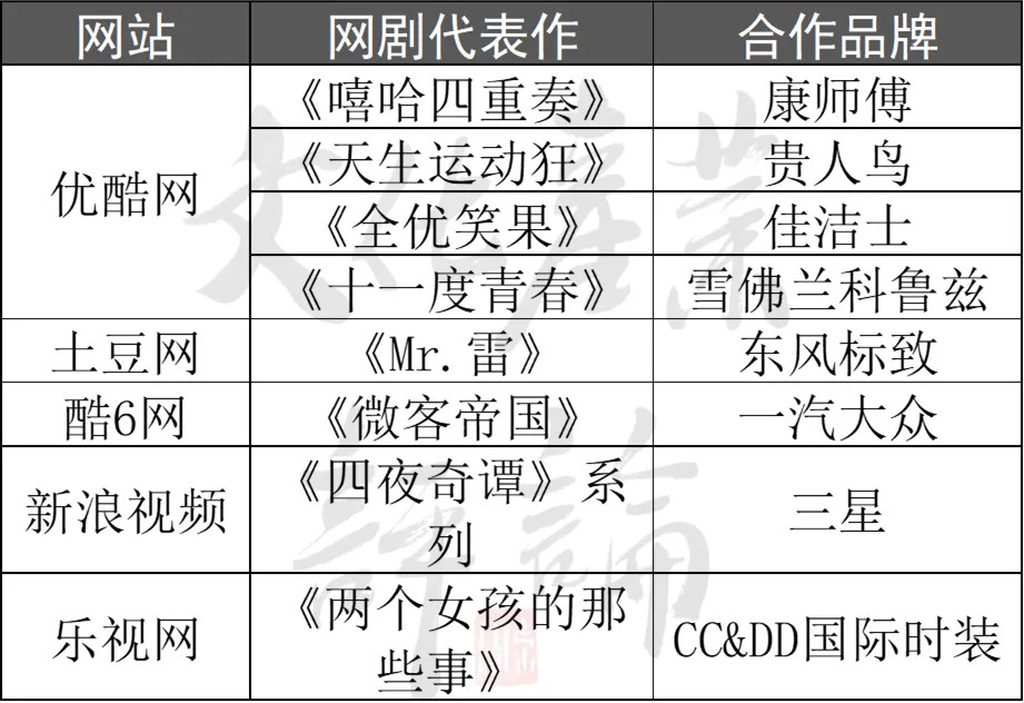 因此,与其称这个时期为网剧的初创期,不如称其为“网剧营销”时期。网剧更像是寄生于广告之中,成为流量与品牌的拥趸。