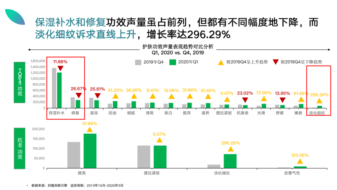 时趣在解决过程中,主要是通过洞察引擎对面霜市场大盘进行分析、同时分析消费者洞察、竞品营销卖点表现等方面,最终为产品锁定在了“抗皱”、“抗衰”,并根据人群洞察,推荐了把这两大功能以“细纹”、“抗初老”为核心卖点。此举让该产品成为品牌2020年以来表现最好的新品。
