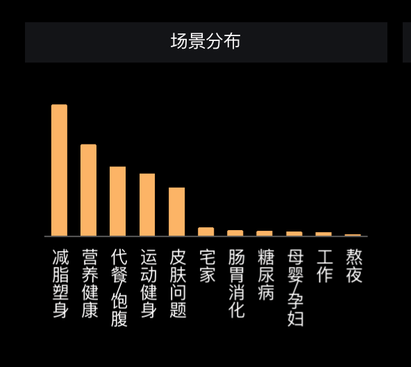 时趣洞察引擎通过分析提及「无蔗糖」人群的场景分布后发现,她们关注无蔗糖主要原因集中在:减肥塑身、营养健康、代餐/饱腹、运动健身、皮肤问题这几个领域;而宅、便秘、工作、熬夜等原因较为次要。