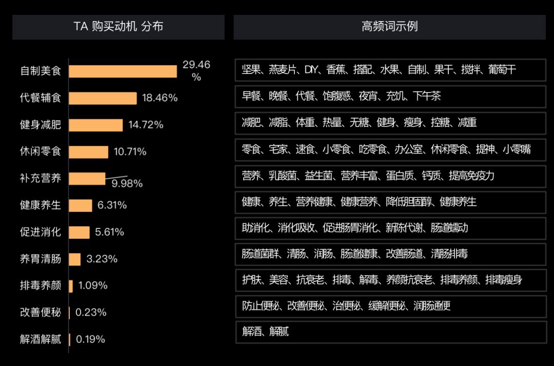 在第三步,时趣又分析了消费者购买酸奶产品的几大动机后发现: