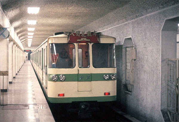 建国门站。这是北京地铁唯一一组从日本进口的列车,1984年开始使用。