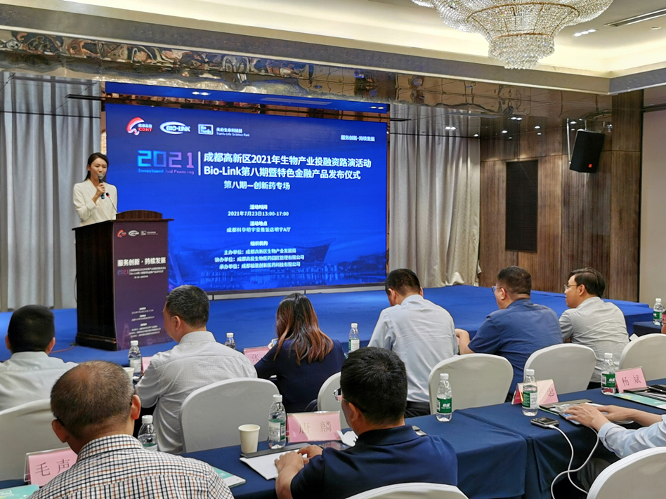 7月23日,“成都高新区2021年生物产业投融资路演活动Bio-Link第八期暨特色金融产品发布仪式”举行。本次活动以“服务创新·持续发展”为主题,旨在通过金融服务创新,助力医药健康产业长远发展。