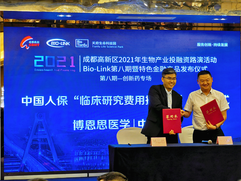 作为成都生物产业发展主阵地,成都高新区率先探索,在基金、信贷、保险三个领域同时发力,加快生物产业特色金融产品研发。当天发布仪式上,成都道远国生医疗健康股权投资基金、生物产业特色信贷产品BIO“以投定贷”以及“临床研究费用损失险”正式签约落地。其中,BIO“以投定贷”和“临床研究费用损失险”两款产品为全国首创。