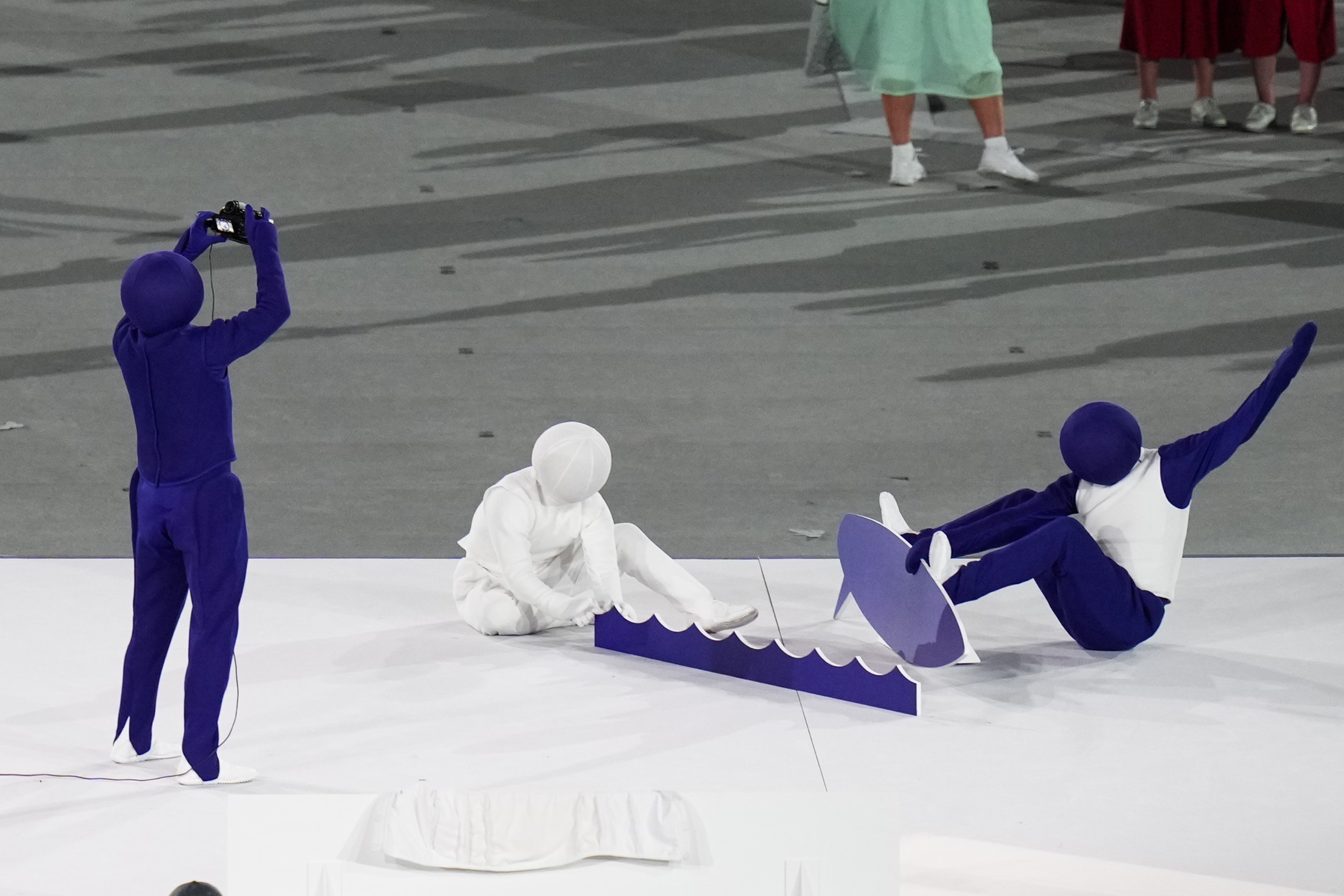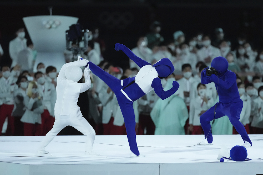 在这个节目里,参加者要利用些辅助工具或手段,用自己的肢体变成各种各样的东西,在3分钟内完成一个富有创意和笑点的节目。而你刚才在东京奥运会开幕式上看到的那段项目图标的表演,它就是一次高分的“超级变变变”。
