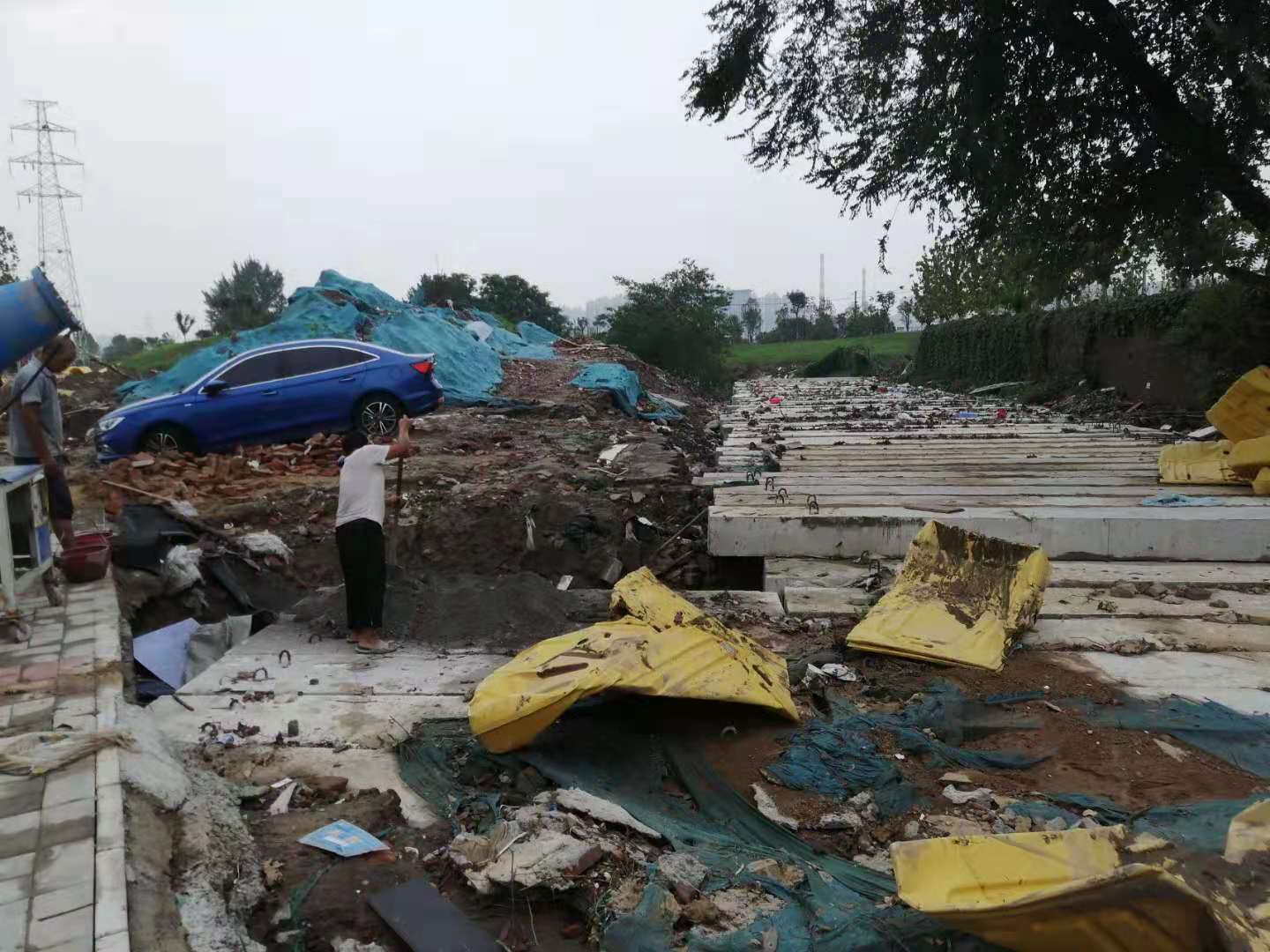 但工人们表示,暴雨天气发生的20多天前,他们一直在这里工作,未见相关部门人员前来检查河道排水情况。