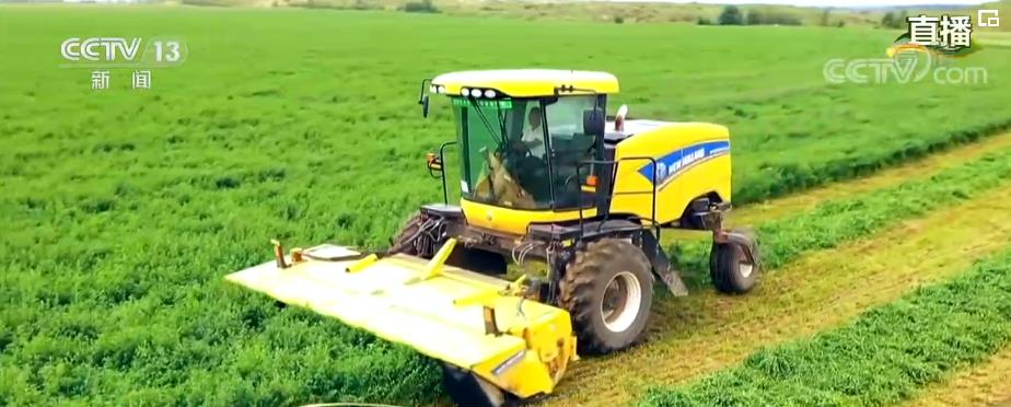 现在,在沙漠圆形农田上大多种植着马铃薯、苜蓿、玉米,三种作物每亩的年均收入大概在1000元—3000元不等。三种作物施行轮耕,苜蓿种植期限是五年,每年可以收割四茬,每次收割完苜蓿的根系就会停留在沙土中,最大程度实现防风固沙的作用。目前,这三种作物已经全部实现机械化,尤其以苜蓿为例,从收割到打包成方形或圆形草垛,再运行到仓库进行储存,已经实现了全流程机械化。机械化的加持带来的是规模增加,甚至是下游产业的发展。以苜蓿、玉米等饲料产业下游的养殖业肉牛、湖羊在当地都已经颇具规模。