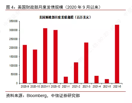 3)财政债务上限导致的发债供给大幅下降:确实4月和5月财政发债供给下降,但这一趋势最早始于2020年9月。