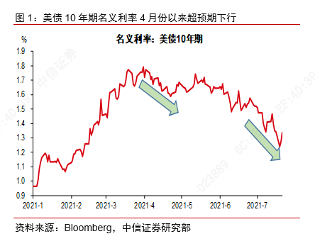 综合来看,我们认为,美债10年期收益率4月和7月份的意外下行更多源自:欧央行加码释放流动性,同时美国财政发债供给在4、5、7月有明显下降造成的。