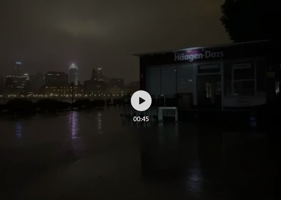 “陆家嘴滨江亲水平台被淹”的视频