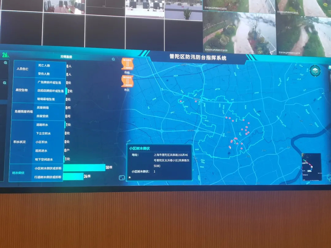 “烟花”来临恰逢天文大潮汛,苏州河沿岸中远两湾城区段的56个公共摄像头也纳入“一网统管”平台,可以实时监控苏州河水位变化。除此以外,遍布在城区各个主干道、小区及辖区单位的公共摄像、地下空间安装的积水感应装置等也成为城运部门主动发现突发情况的重要手段。“通过这些感知设备,感应险情发送预警,工作人员收到警报能及时处置,并且进行反馈,形成处置的一个‘闭环’管理。”尹科强表示。