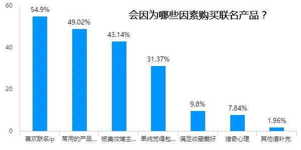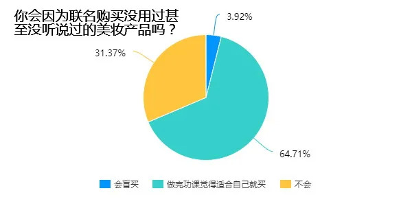值得关注的是,只有3.92%的消费者愿意因为联名盲买没用过甚至没听说过的美妆产品。
