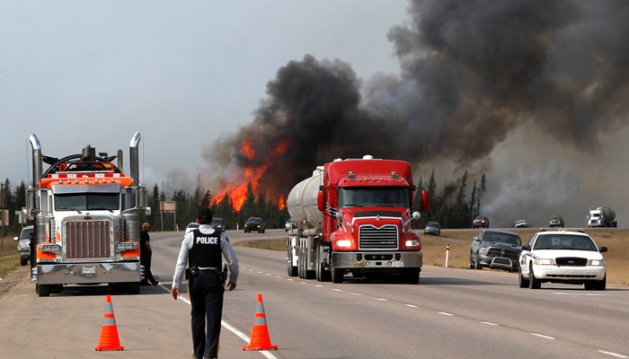 森林大火已经迫使麦克默里堡市8万多居民全部撤离。撤离到北部避难点的居民正面临大火封路的危险,救援部门已经用飞机将1.2万居民转移到了南部避难点。另外7000人则经由陆路转移。