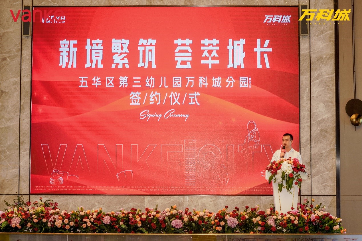 紧接着,昆明市五华区第一幼儿园园长文永福先生、云南万科合伙人李春杰先生,登台签约,在各大媒体与各位来宾的见证下,万科城X昆明市五华区第一幼儿园签约仪式圆满完成!