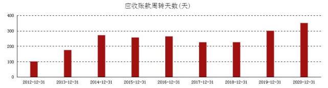 与此同时,公司应收账款周转天数从2012年的100天攀升至2020年的350天,反映出公司资产流动性偏弱、短期偿债能力偏弱。