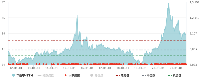 从医疗保健板块指数(882006.WI)历史市盈率走势来看,目前市盈率TTM为51.56,接近危险值50.39,这也是自2020年2月以来首次。值得注意的是, 2020年7月指数市盈率创下90.77的创纪录高位。