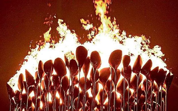 点燃的花瓣树立起来,凑成一朵英国玫瑰的模样,汇聚成奥运会的主火炬,这个场景让人难以忘记。