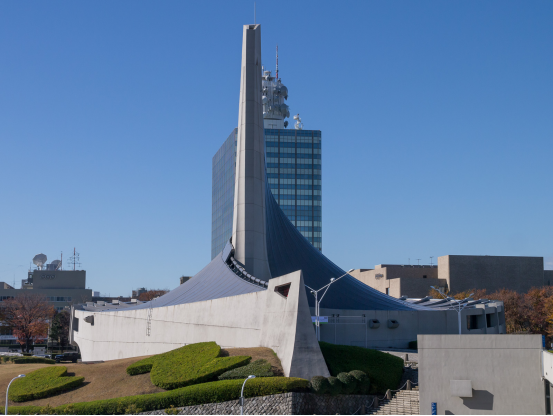 场馆采用了当时最先进的悬锁结构,打造了无支柱的超大空间,设计中还蕴含着日本传统建筑元素,可以追溯到日本古建筑中的神社造型。